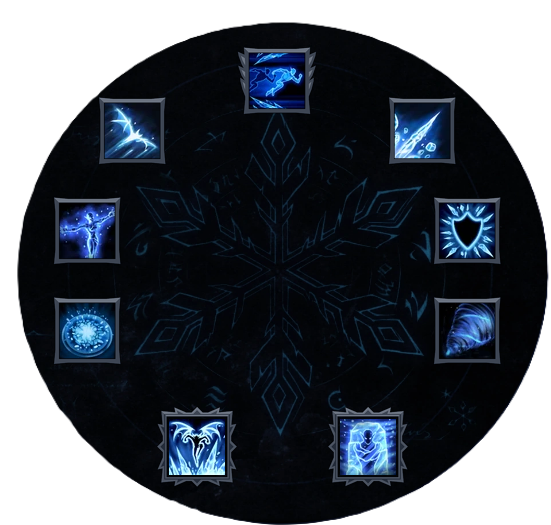 Bloque les attaques au corps à corps et les projectiles pendant 1,5 s. Bloquer une attaque déclenche une nova de glace qui inflige 50 % de dégâts magiques et applique Gel pendant 2s.